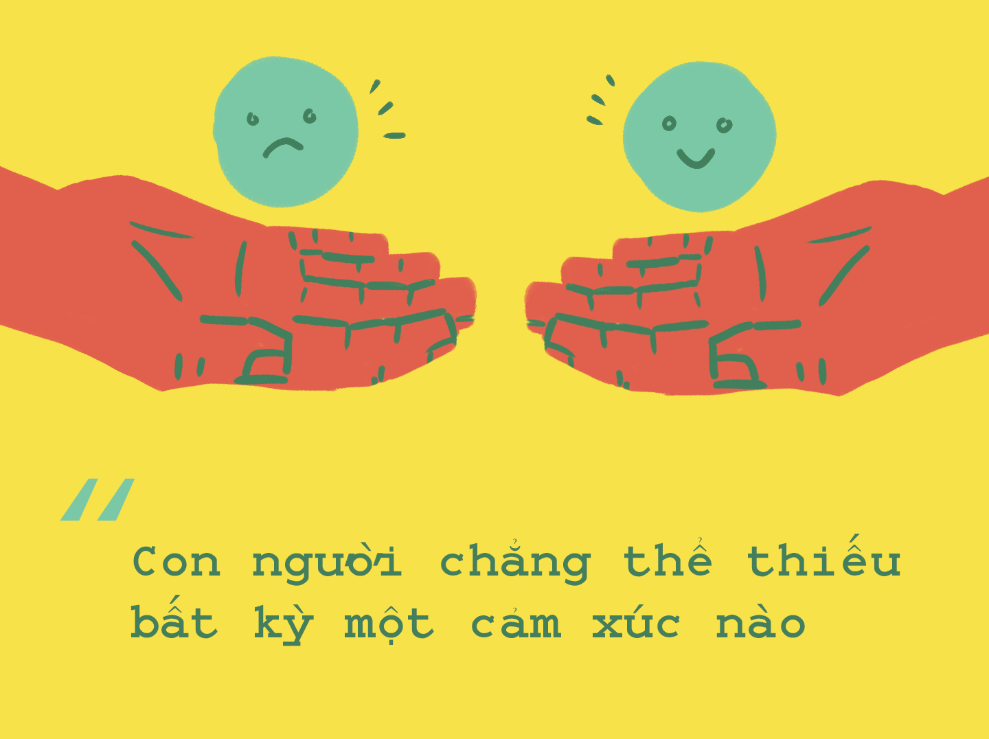 – Hơn thế, buồn, hay khóc, chính là cách tôi giúp con người giải tỏa lo âu, áp lực. Khi ấy, cơ thể tạo ra hoóc-môn điều hòa cơ thể, tăng đề kháng. Nếu tôi bị kìm hãm, những lo âu mệt mỏi đó bao giờ mới được giải tỏa? Nếu con người không thể cảm nhận được nỗi buồn của chính mình, họ làm sao có thể đồng cảm với khổ đau của người khác? Bởi, đồng cảm được bắt nguồn từ sự thương xót và buồn bã trước những mảnh đời bất hạnh kia mà.