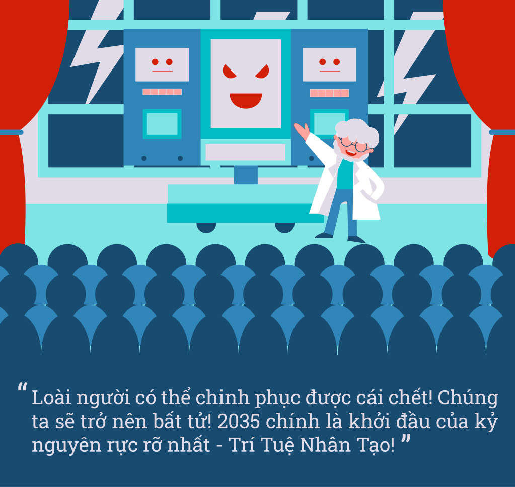 – Lần đầu tiên, tại chính đất nước này, và cũng là lần đầu tiên trước toàn thế giới, tôi – Koch Steiner, xin được dõng dạc tuyên bố: Loài người có thể chinh phục được cái chết! Chúng ta sẽ trở nên bất tử! 2035 chính là khởi đầu của kỷ nguyên rực rỡ nhất – Trí Tuệ Nhân Tạo!