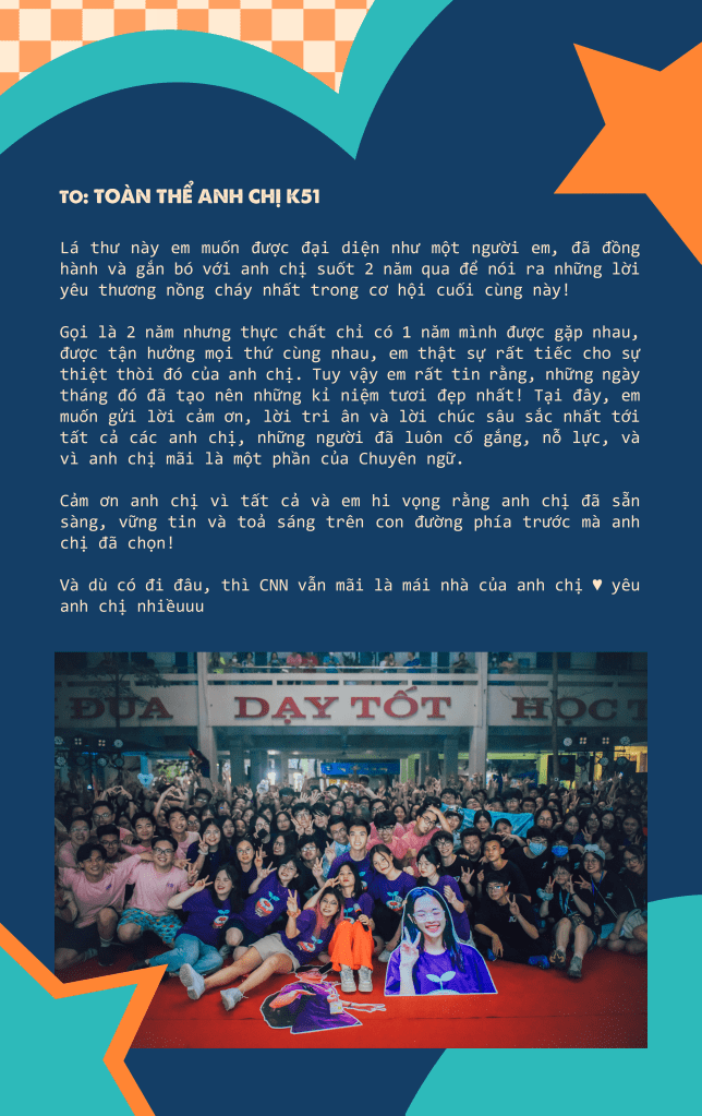 Vậy là hành trình 1000 ngày của các anh chị K51 tại mái nhà Chuyên Ngoại ngữ đã chính thức khép lại. 3 năm trôi qua thật nhanh, mang theo bao nhiêu câu chuyện vui buồn cùng những ước nguyện còn dang dở. Dù giờ đây tất cả chỉ còn là hoài niệm, nhưng mong anh chị sẽ luôn nở nụ cười thật tươi mỗi khi nhớ về Chuyên Ngữ, về một thời được cháy, được sống một cách rực rỡ nhất trong những năm tháng tuổi trẻ.