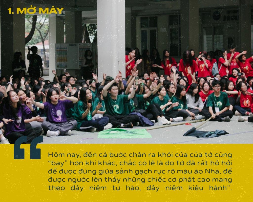 Hay kể cả vào cuối ngày hội thao, khi các vòng đấu đã xong xuôi, âm nhạc đã dừng, hội thao của tớ vẫn chưa đóng lại. Bởi sau đó, Nhà tớ ngồi bên nhau thành một vòng tròn nho nhỏ gần gũi, chúng tớ gửi nhau đôi điều, ôm nhau chặt thật chặt. Và thế là đủ để tớ biết Nhà vẫn sẽ luôn là nhà, không phải chỉ trong vỏn vẹn một ngày mà tất cả thời gian tớ có ở Chuyên Ngữ. Rồi sau hôm nay, màu Nhà và người Nhà chắc chắn sẽ luôn là những điều thật đặc biệt trong lòng tớ.