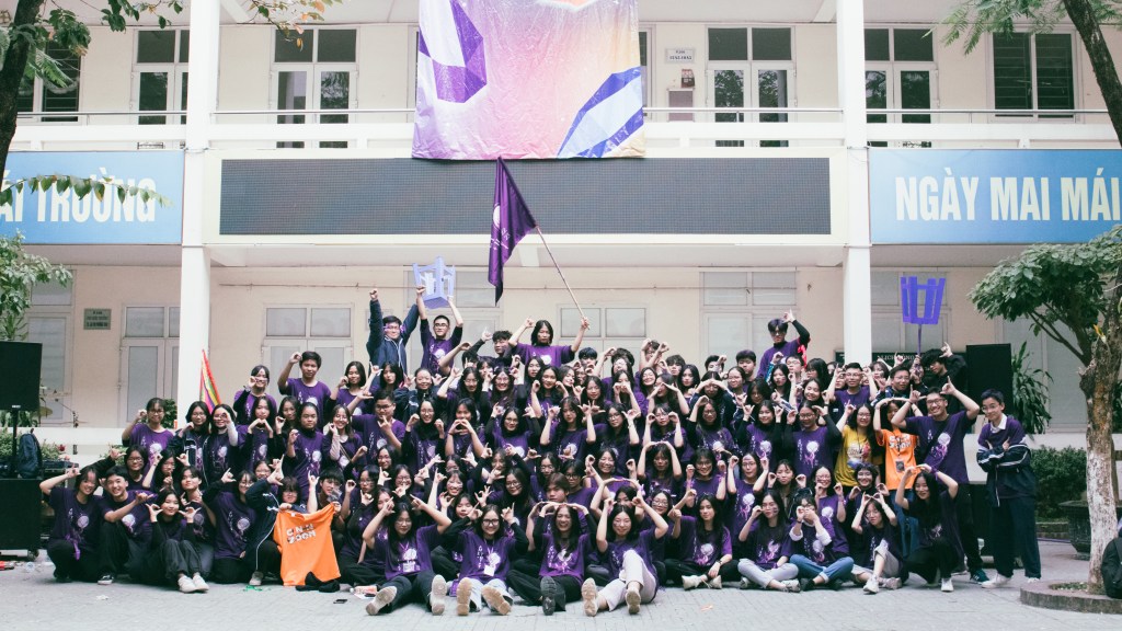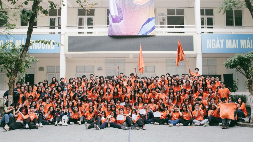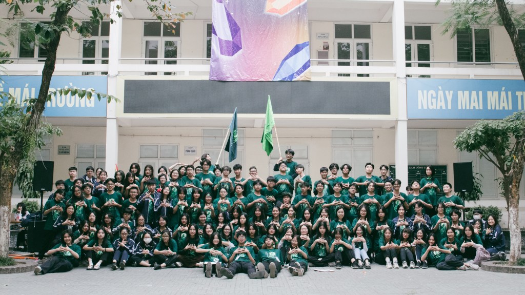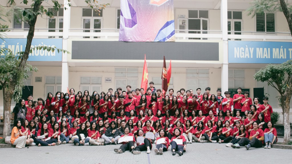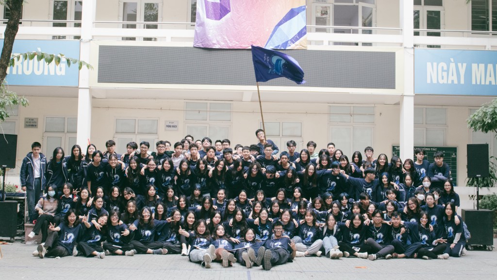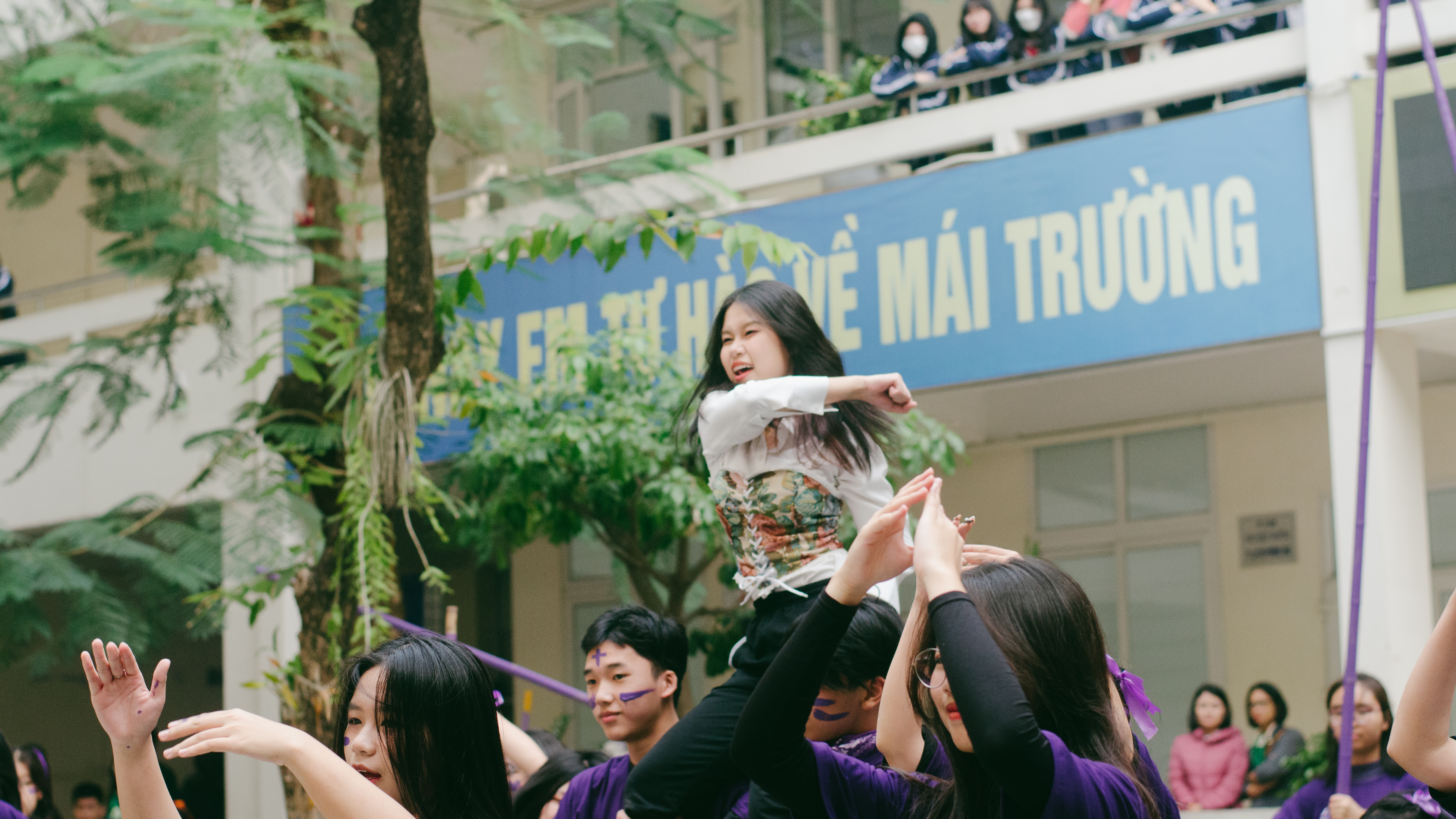 Khi thấy trên tấm ảnh chụp những đôi mắt tràn đầy nhiệt huyết, kí ức tớ tựa một cuốn phim quay ngược về khoảnh khắc được cùng tất cả mọi người xung quanh hét đến khản cả cổ. Các màn trình diễn nhảy sạp, kéo co, bóng né và nhảy dây lại một lần nữa sống động trong tớ, khiến tớ yêu lấy tinh thần của hội thao, của Chuyên Ngữ. Nhưng hội thao đâu chỉ có so tài và tranh cúp, tấm hình đẹp nhất của ngày hôm ấy hẳn phải là khi năm màu áo chảy thành một biển người và hòa chung một nhịp. Tớ chẳng còn biết người đứng bên cạnh mình là ai nhưng hội thao đã kéo chúng tớ lại với nhau bằng những cái khoác vai, bằng bản hòa ca vang khắp khoảng trời hình chữ nhật.