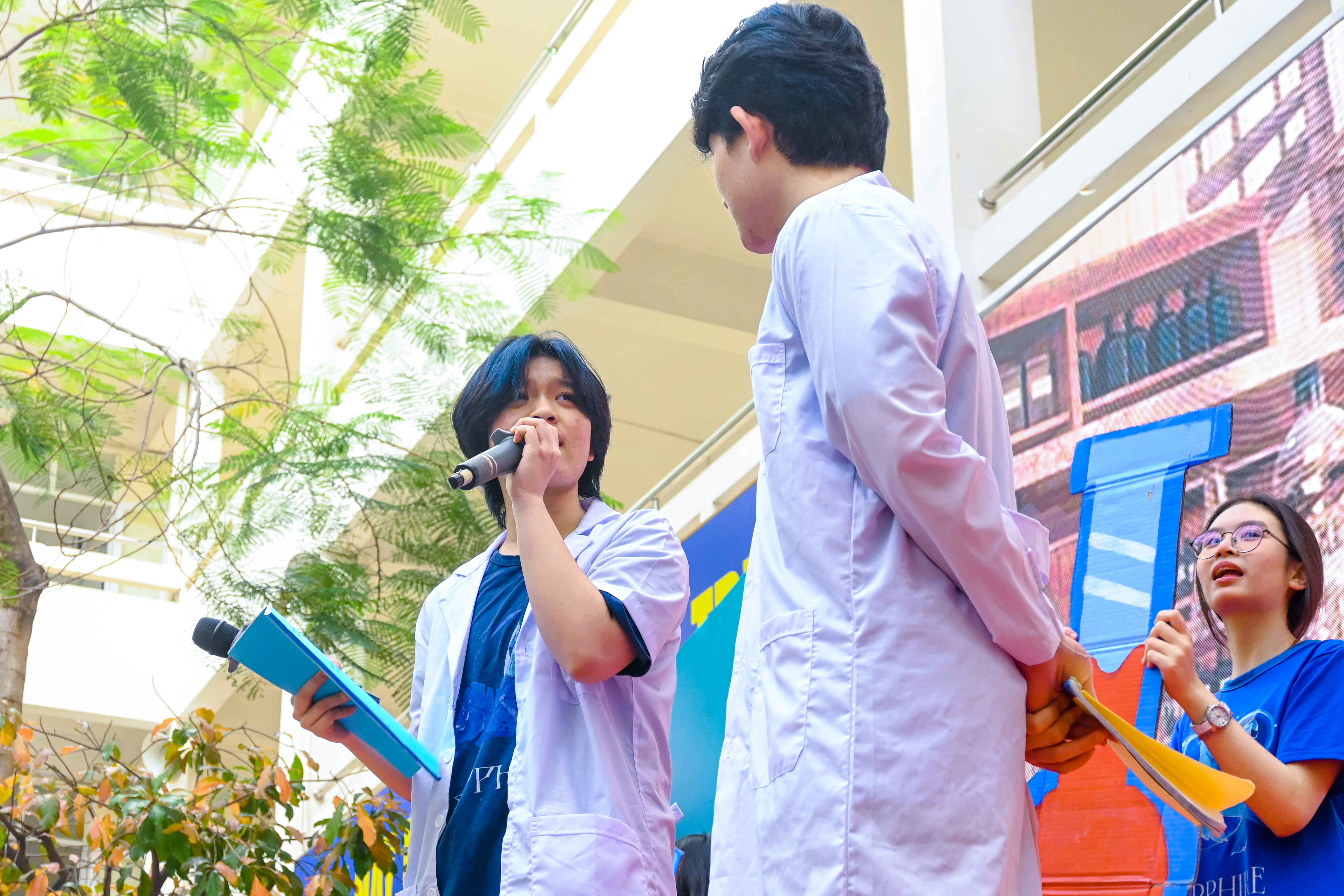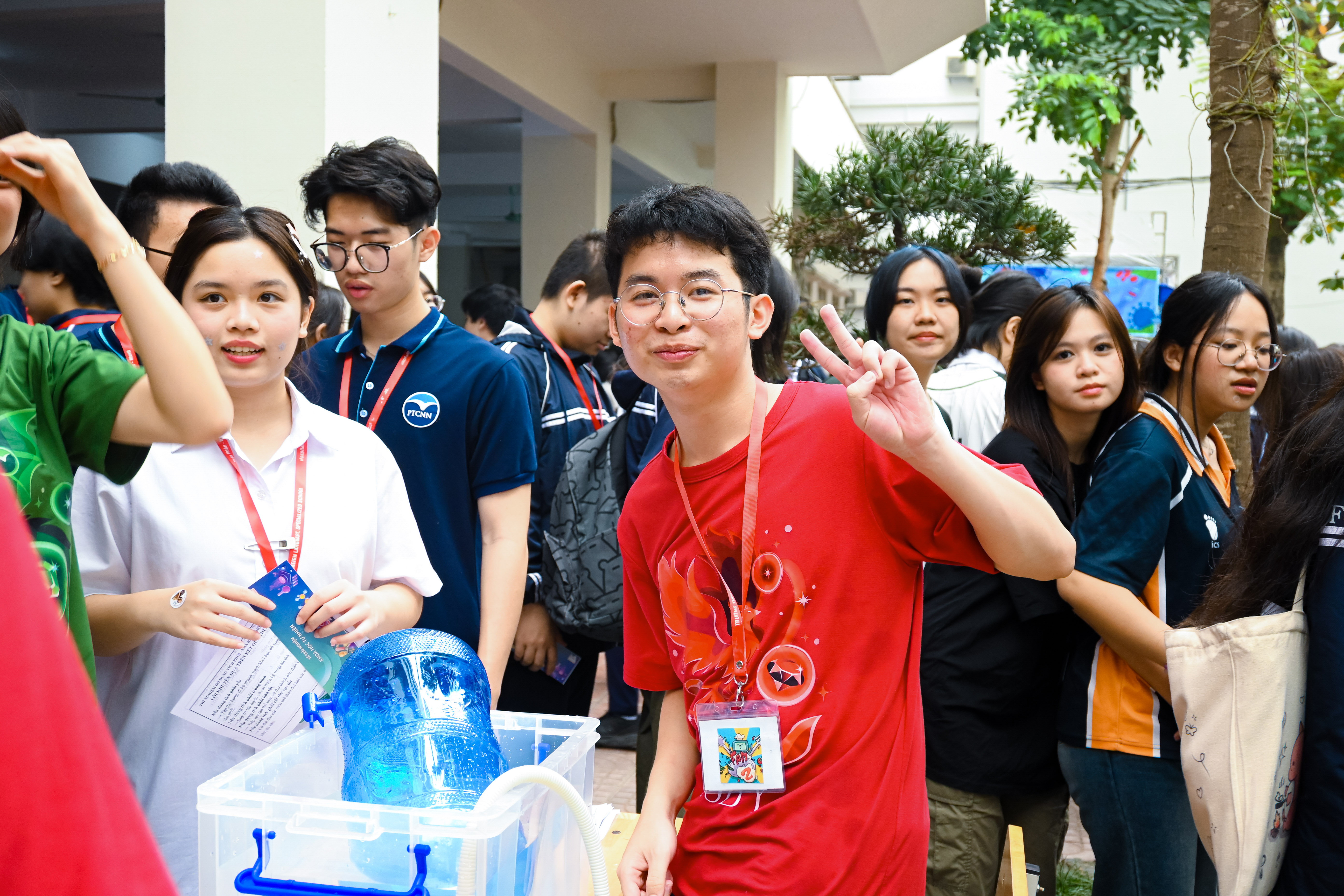 Từ sáng tinh mơ, cả sân trường đã rộn ràng những tiếng bước chân, tiếng nói cười và cả những tiếng dụng cụ va vào nhau nghe lạch cạch thật vui tai từ những bạn học sinh đang tất bật chuẩn bị cho trại thí nghiệm của đội mình. Dù vẫn còn sớm, năng lượng của những cô cậu học trò ấy dường như tỉ lệ thuận với niềm vui và háo hức dành cho những hoạt động đặc biệt sắp đến gần.